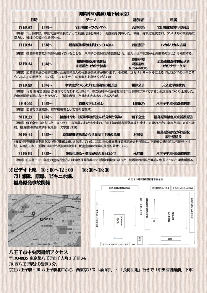 『ヒロシマの少年じろうちゃん』朗読とコカリナ演奏 第4回「731・原爆・ビキニ・フクシマ」展