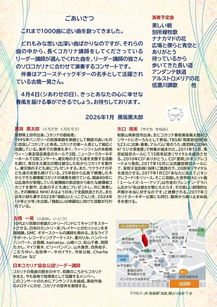 うたとコカリナとアコースティックギターで奏でる 黒坂黒太郎の世界 2026.4.4